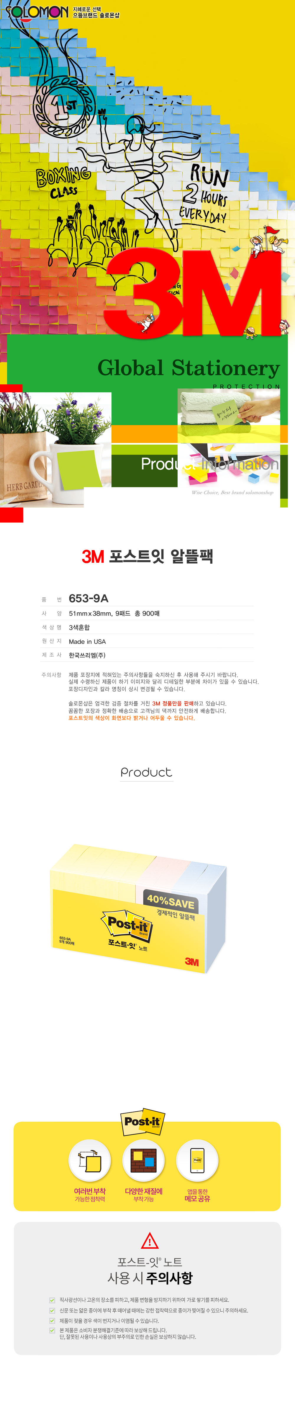 [¿À´ÃÃâ°í] 3MÆ÷½ºÆ®ÀÕ 653-9A 51x38mm 9ÆÐµå900¸Å/¾²¸®¿¥Æ÷½ºÆ®ÀÕ/Æ÷½ºÆ®Ÿæ