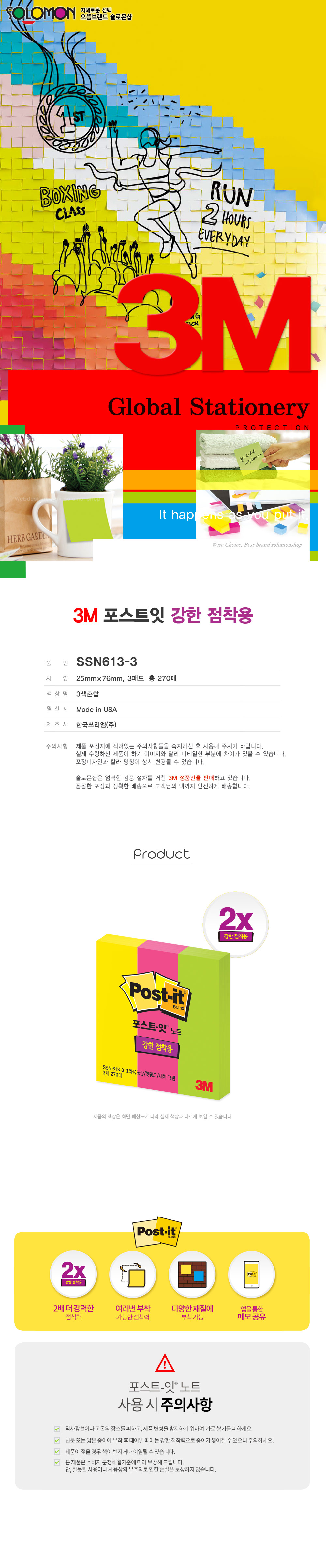[¿À´ÃÃâ°í] 3MÆ÷½ºÆ®ÀÕ 25x76mm 3ÆÐµå 270¸Å SSN613-3 °­ÇÑÁ¡Âø¿ë